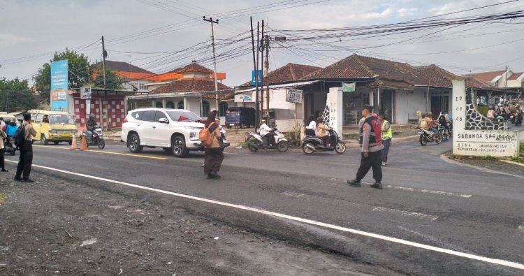 Personel Polsek Rajapolah Polres Tasik Kota menggelar kegiatan strong point Pagi dengan melakukan pengamanan dan pengaturan lalu lintas di sejumlah titik rawan kecelakaan lalu lintas, rawan kemacetan, pusat keramaian serta lokasi sekolah. Rabu/03/XII/2025 ).