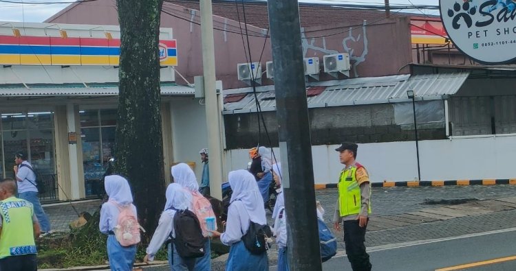 KOTA TASIKMALAYA - Personel Polsek Rajapolah Polres Tasik Kota menggelar kegiatan strong point Pagi dengan melakukan pengamanan dan pengaturan lalu lintas di sejumlah titik rawan kecelakaan lalu lintas, rawan kemacetan, pusat keramaian serta lokasi sekolah. Senin/15/XII/2025 ).