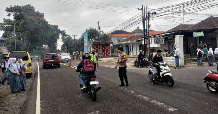 Personel Polsek Rajapolah Polres Tasik Kota menggelar kegiatan strong point Pagi dengan melakukan pengamanan dan pengaturan lalu lintas di sejumlah titik rawan kecelakaan lalu lintas, rawan kemacetan, pusat keramaian serta lokasi sekolah