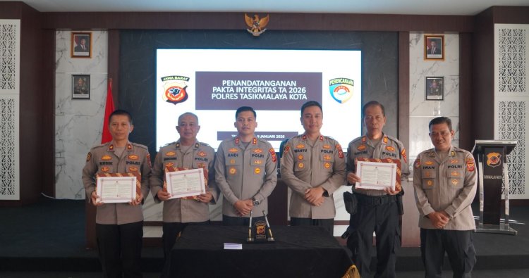 Tasikmalaya Kota – Kapolres Tasikmalaya Kota AKBP Andi Purwanto, S.I.K., M.H., memimpin langsung kegiatan Sosialisasi Daftar Isian Pelaksanaan Anggaran (DIPA) dan Penandatanganan Pakta Integritas Tahun Anggaran 2026 yang dilaksanakan di Aula Endra Dharmalaksana Polres Tasikmalaya Kota, pada Jumat (9/1/2026).